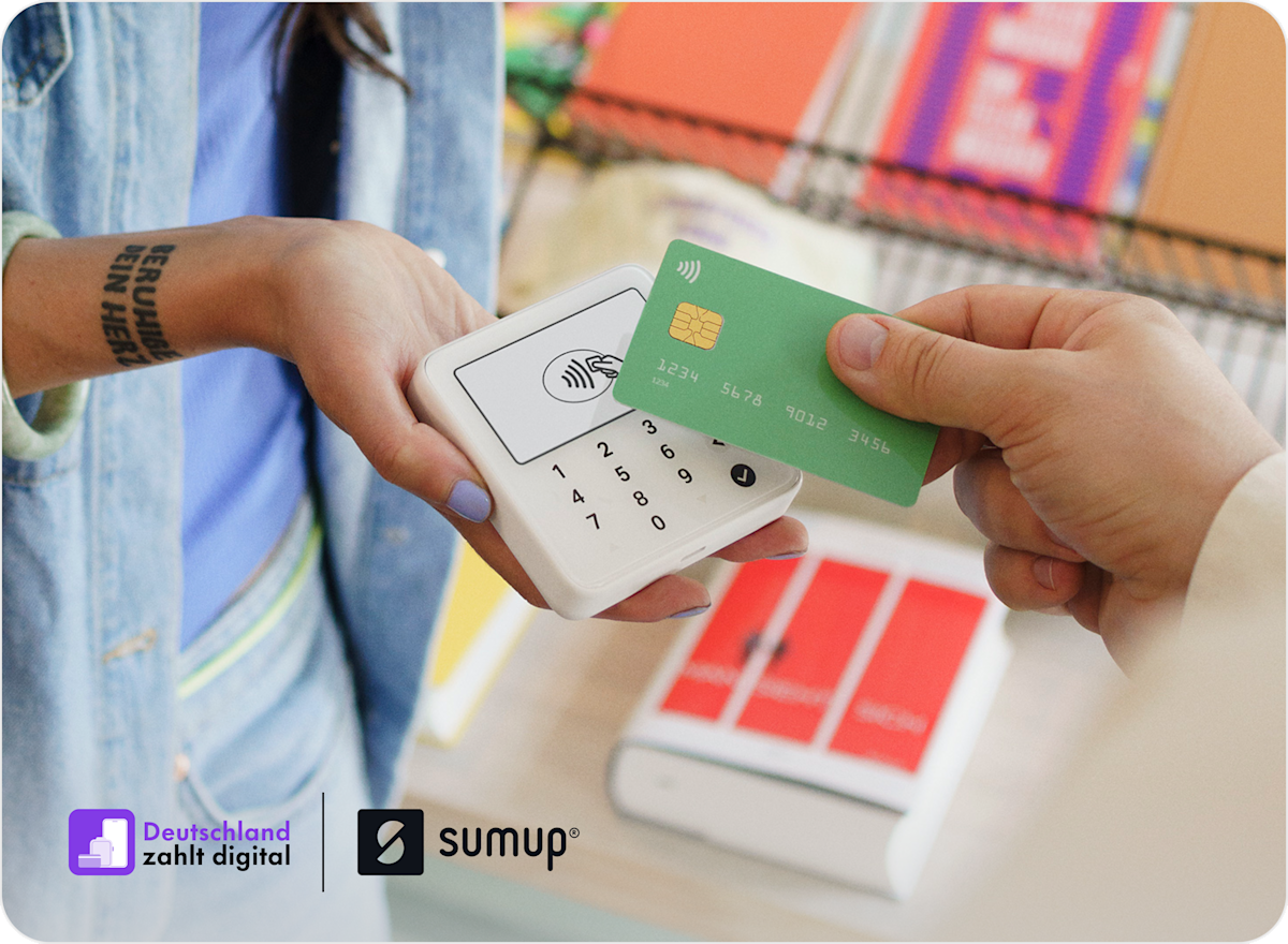 Akzeptieren Sie noch keine Kartenzahlungen? Starten Sie ganz einfach – ein Jahr lang gebührenfrei¹ mit der Initiative Deutschland zahlt digital und SumUp.