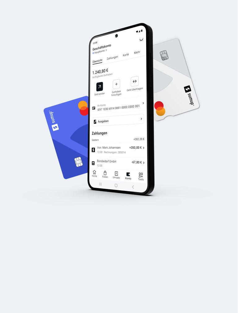 Sie haben Umsätze mit Ihrem SumUp Kartenterminal gemacht? Mit einem SumUp Geschäftskonto kommen Sie nach nur einem Tag an Ihr Geld – sogar an Wochenenden und Feiertagen.