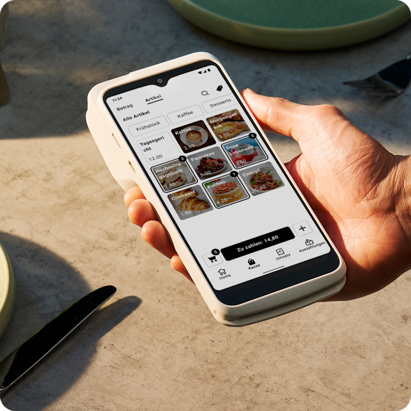 Unser leistungsstarkes Gerät im Taschenformat für die Zahlungsabwicklung, mit integriertem Belegdrucker und intuitivem Touchscreen – ohne Mietkosten oder monatliche Mindestumsätze.