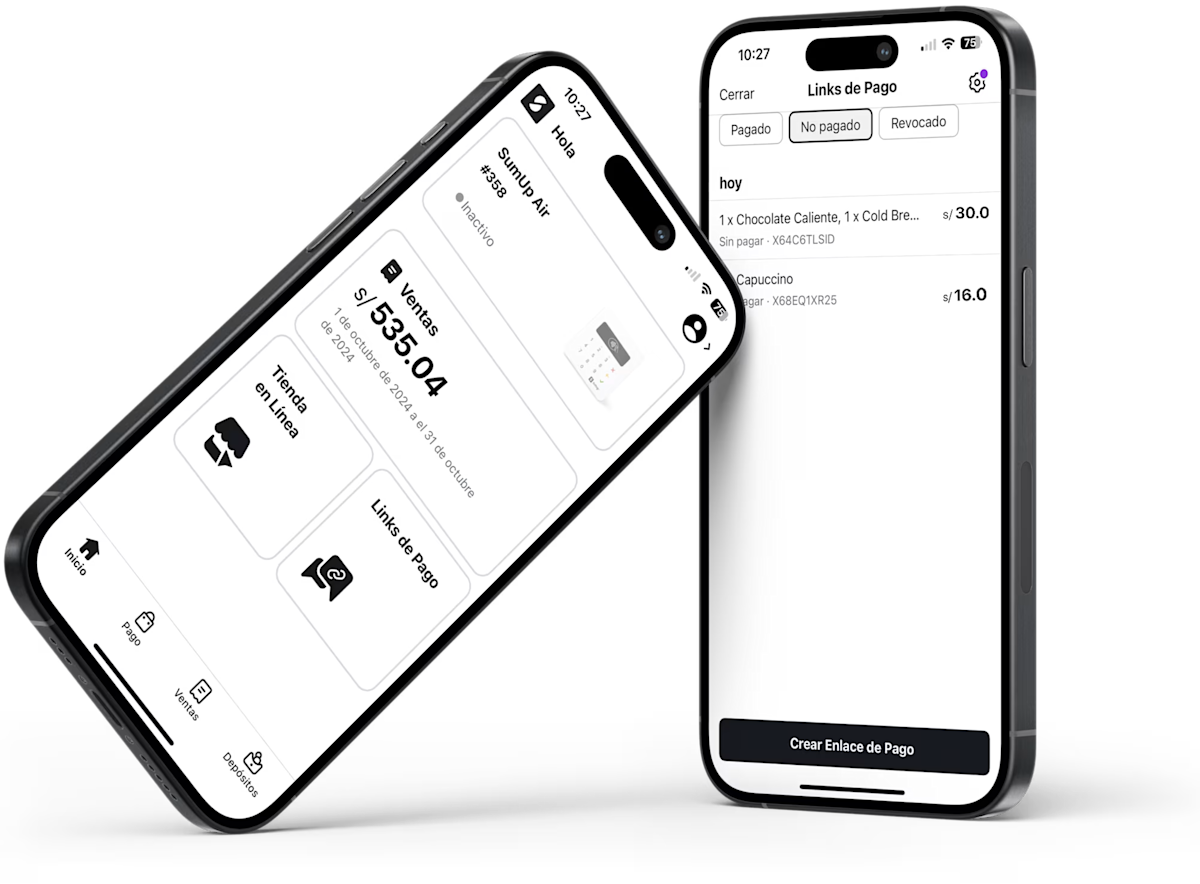 Descarga la App SumUp desde Google Play o App Store y encuentra todo lo que necesitas para gestionar tu negocio: reportes de ventas online, links de pago, gestión de inventario y más.