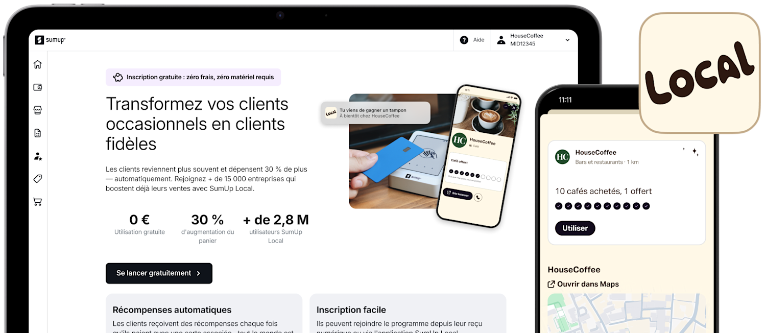 SumUp Local est gratuit. Aucun coût supplémentaire, aucun matériel requis.