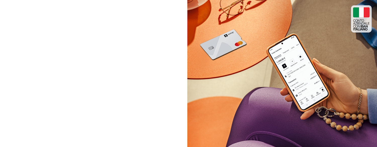 Apri il tuo conto e ottieni il tuo IBAN con pochi clic. Inoltre, ricevi una Mastercard gratuita per le spese quotidiane della tua attività.