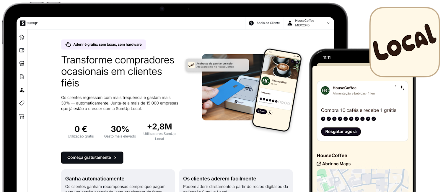 Registe-se gratuitamente na SumUp Local, sem custos nem hardware extra.